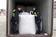 近日,上海海關(guān)兩名現(xiàn)場(chǎng)作業(yè)人員打開(kāi)一個(gè)封存的集裝箱,一股刺鼻的嗆人氣味撲面涌出,箱子里塞滿了編織袋包裝物...
