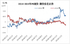 2019年中國PE期現(xiàn)基差范圍較2018年縮窄,以華北煤化工7042價格與LL主力合約結(jié)算價基差來看,全年升貼水范圍...