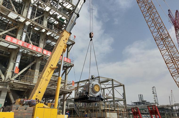 榆能化聚烯烴項目部相關(guān)負責人介紹,PP3裝置主反應(yīng)器循環(huán)氣壓縮機是該裝置大力推進復工復產(chǎn)、疫情防控以來進行的首臺大型設(shè)備吊裝。吊裝前,相關(guān)單位通力配合,精心謀劃,提前搭設(shè)腳手架作業(yè)平臺等,有效減少了高處作業(yè),大大降低了設(shè)備安裝風險。