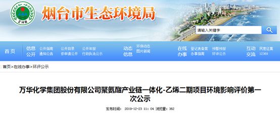 萬華煙臺(tái)聚氨酯項(xiàng)目環(huán)評(píng)公示