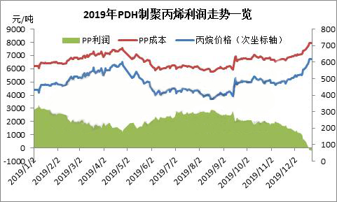 ????????2019年12月份,對于聚丙烯這個產(chǎn)品來說,注定是不平凡的一個月份。聚丙烯價格跌破8000元/噸大關(guān)并一路下行、丙烷脫氫制聚丙烯利潤幾乎為負(fù)。