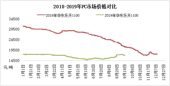 ????????月初,國(guó)內(nèi)生產(chǎn)企業(yè)出廠報(bào)盤調(diào)漲,以及部分進(jìn)口料到港補(bǔ)倉(cāng),人民幣匯率影響,貿(mào)易商現(xiàn)貨成本面均有走高,場(chǎng)內(nèi)看漲情緒漸起,報(bào)盤均呈上漲趨勢(shì)。伴隨上游苯酚反傾銷政策公布,市場(chǎng)看漲情緒進(jìn)一步加重,貿(mào)易商操盤積極性明顯走高,部分貨緊牌號(hào)更是日漲幅高達(dá)1200元/噸。下游對(duì)市場(chǎng)大幅上漲跟進(jìn)情況欠佳,市場(chǎng)整體貨源消耗顯疲弱。中旬,伴隨中秋小長(zhǎng)假來(lái)臨,下游接盤多剛需為主,觀望為主。后期受沙特原油事件影響,國(guó)內(nèi)生產(chǎn)企業(yè)出廠報(bào)盤均大幅走高,伴隨原料雙酚A及上游化工整體大幅上漲的走勢(shì),場(chǎng)內(nèi)炒漲情緒濃厚。下游詢盤意向走高,接盤備貨意向明顯,市場(chǎng)交投明顯提升。場(chǎng)內(nèi)利好支撐強(qiáng)勁,商家多有封盤暫不報(bào)價(jià)的操作,實(shí)盤以商談為主。隨著原油影響面的走弱,成本及貨緊雖支撐市場(chǎng),但貿(mào)易商看漲心態(tài)回歸理性,觀望為主。下旬,臨近國(guó)慶長(zhǎng)假,然下游終端工廠前期受市場(chǎng)報(bào)盤大幅走高的影響,多已提前備貨,接盤意向走弱,市場(chǎng)交投面回歸偏弱狀態(tài)。國(guó)內(nèi)PC生產(chǎn)企業(yè)出廠報(bào)盤延續(xù)走高,加之10月美金報(bào)盤明朗,后市成本面多存上漲預(yù)期。國(guó)內(nèi)裝置維持低負(fù)荷運(yùn)行,進(jìn)口料多待國(guó)慶假期后才能到港補(bǔ)倉(cāng)。成本及貨緊支撐報(bào)盤,然需求明顯走弱制約市場(chǎng)走高,貿(mào)易商操盤多顯謹(jǐn)慎,多依據(jù)各牌號(hào)走貨情況調(diào)整報(bào)盤。