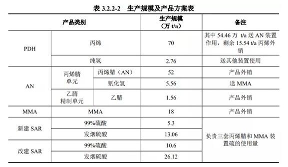 ????????據(jù)介紹,該項目主要建設(shè)內(nèi)容為:擴建項目新建70萬t/a丙烷脫氫裝置、兩套26萬t/a丙烯腈裝置、兩套9萬t/a MMA裝置及一套21萬t/a SAR裝置,同時改建現(xiàn)有項目中一套23萬t/a SAR裝置,擴建項目所有生產(chǎn)裝置均在斯爾邦預(yù)留用地上。