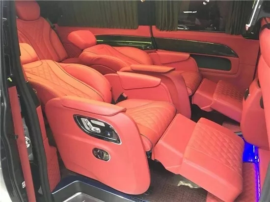 ????????另外,寬大的航空椅配上邁巴赫舒適頭枕,座椅帶有8向的電動(dòng)調(diào)節(jié),超長(zhǎng)的腿拖和按摩功能。奔馳V250后排的座椅被還設(shè)計(jì)成可以電動(dòng)放平成一張床,可謂高端實(shí)用又有個(gè)性。