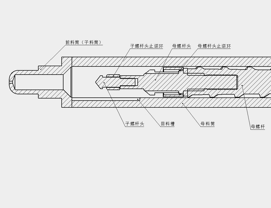 ????????圖7 三級(jí)螺桿(注射螺桿和加料螺桿分開(kāi))