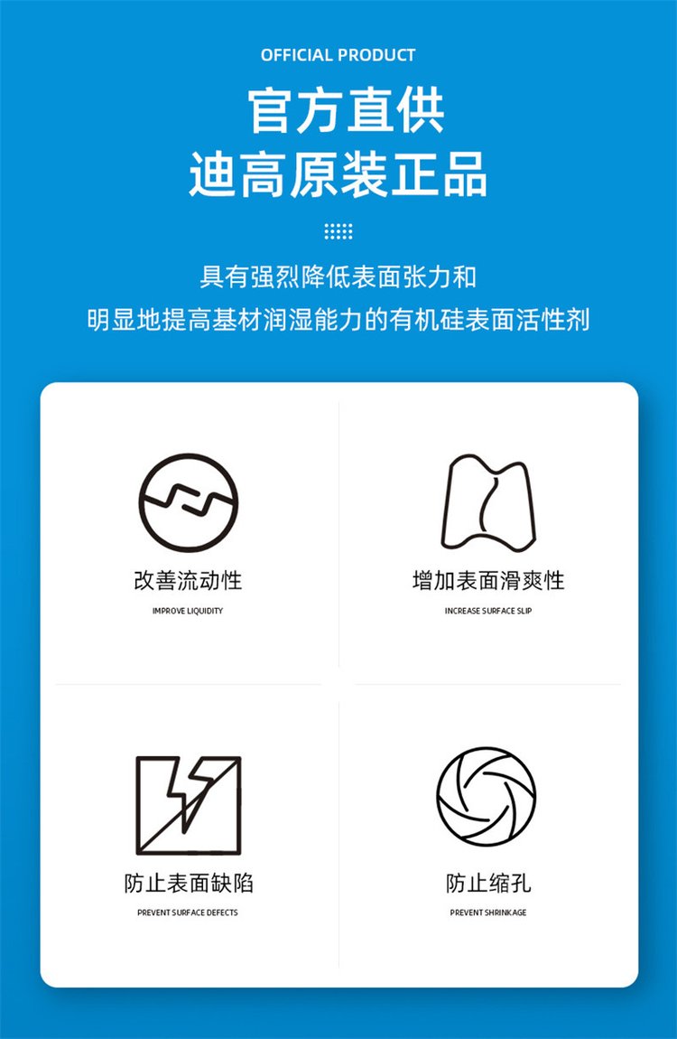 迪高Tego450流平劑是通用型流平劑,具有良好抗縮孔及滑爽性能,可重涂