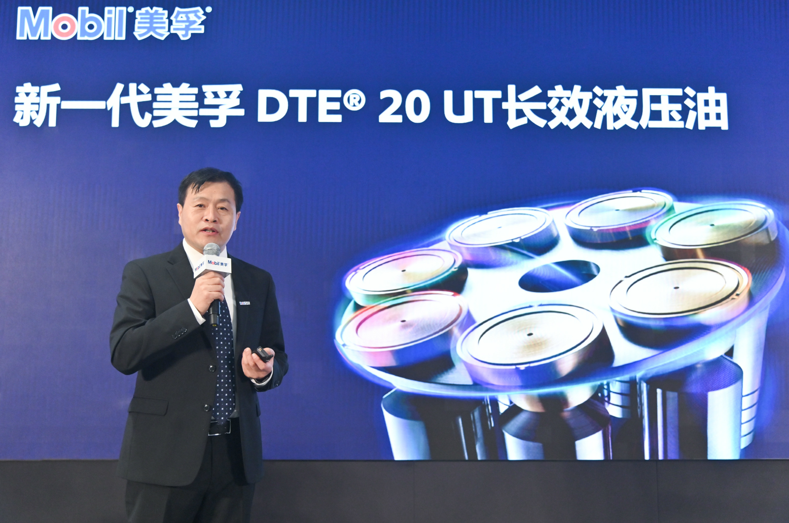 埃克森美孚(中國)投資有限公司北亞潤滑油業(yè)務總工程師陳思軒先生在發(fā)布會上介紹美孚DTE? 20 UT長效液壓油系列產(chǎn)品的特性