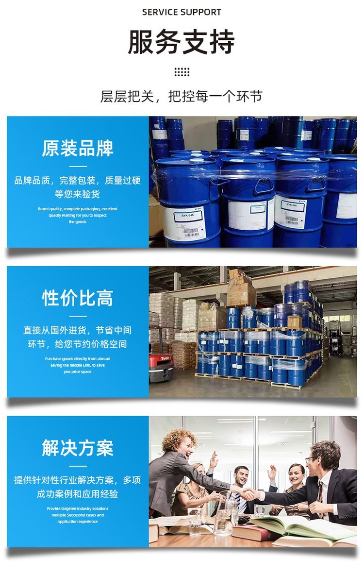 非常適用于水性體系,也能適用于溶劑性,不適合雙組份。適用于清漆涂料和含顏料色漿。