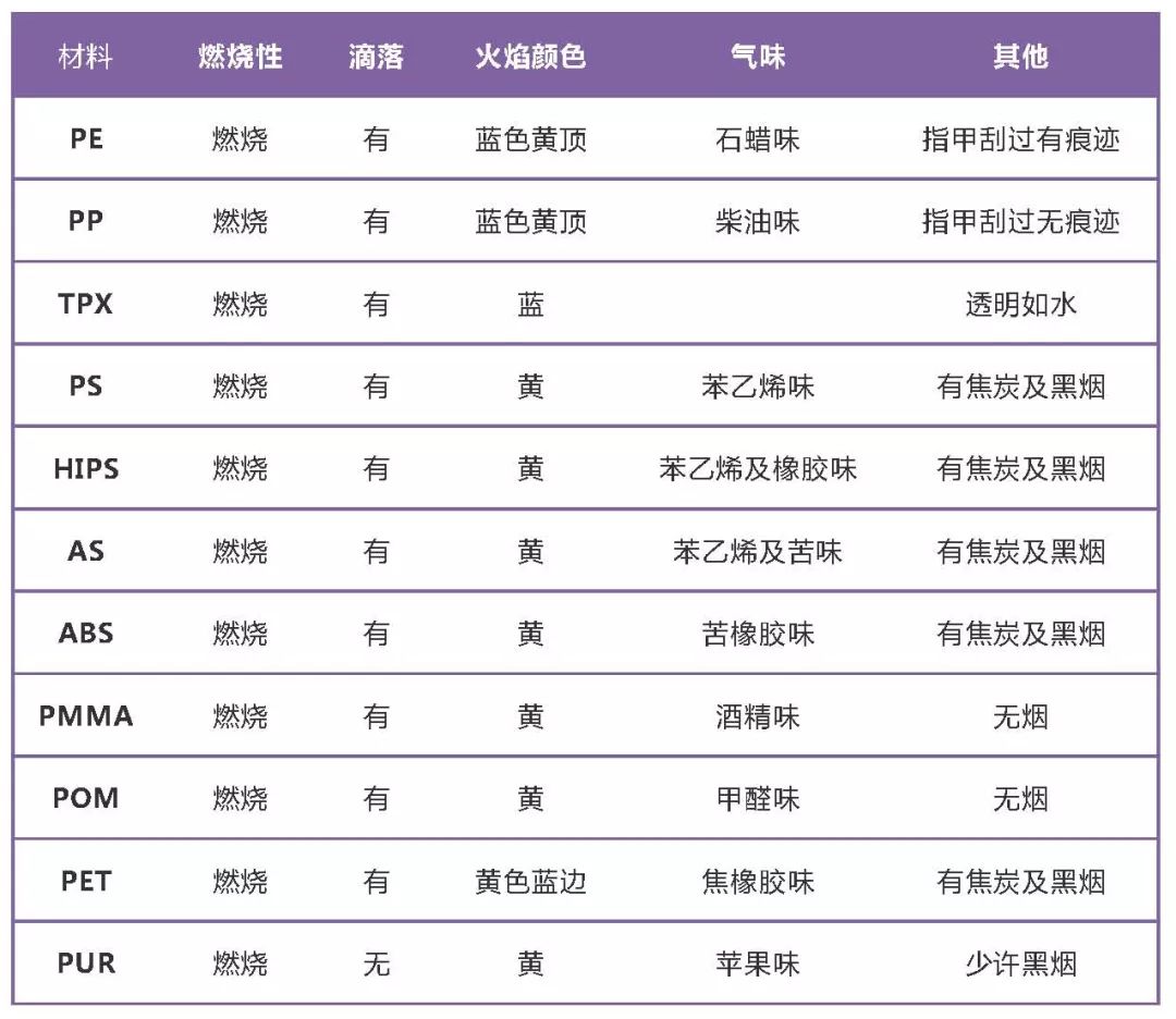 對于普通的塑料品種利用燃燒方法即可比較準(zhǔn)確鑒別。燃燒時(shí)的火焰顏色、氣味以及離火后的狀態(tài)等可以作為鑒別的根據(jù)。