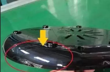 產(chǎn)品表面白霧,從視覺角度來講,它呈現(xiàn)的是白色狀,所以在白色產(chǎn)品時(shí)亦不明顯,黑色高光最為明顯,如圖所示,該產(chǎn)品為PP材料生產(chǎn),周邊表面呈現(xiàn)出大大小小的白色斑紋,像云霧般的癥狀,這里歸類為白霧。